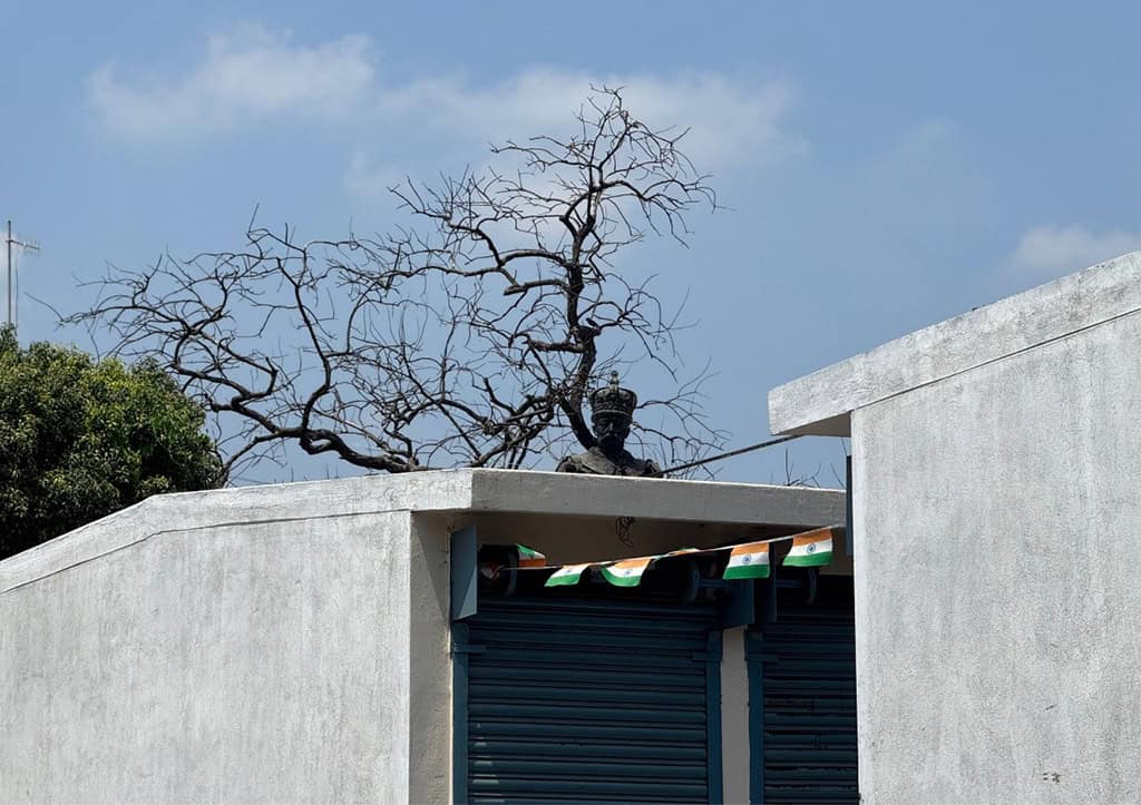 It is not clear as to what possessed our city’s corporation that they had to build a rabbit’s warren of shops all around the statue! Ostensibly meant for hawkers displaced from NSC Bose Road, the outlets are all shut, and the place is rapidly transforming into an open latrine and rubbish tip. The statue itself is completely hidden from view. Our OLD dates to 2021 when King George was out in the open. Our NEW, by Surya Kumar has him trying to release himself from the shops that threaten to bury him. (Please see ‘A locality gets a new identity and a commemorative statue’ for further details.)