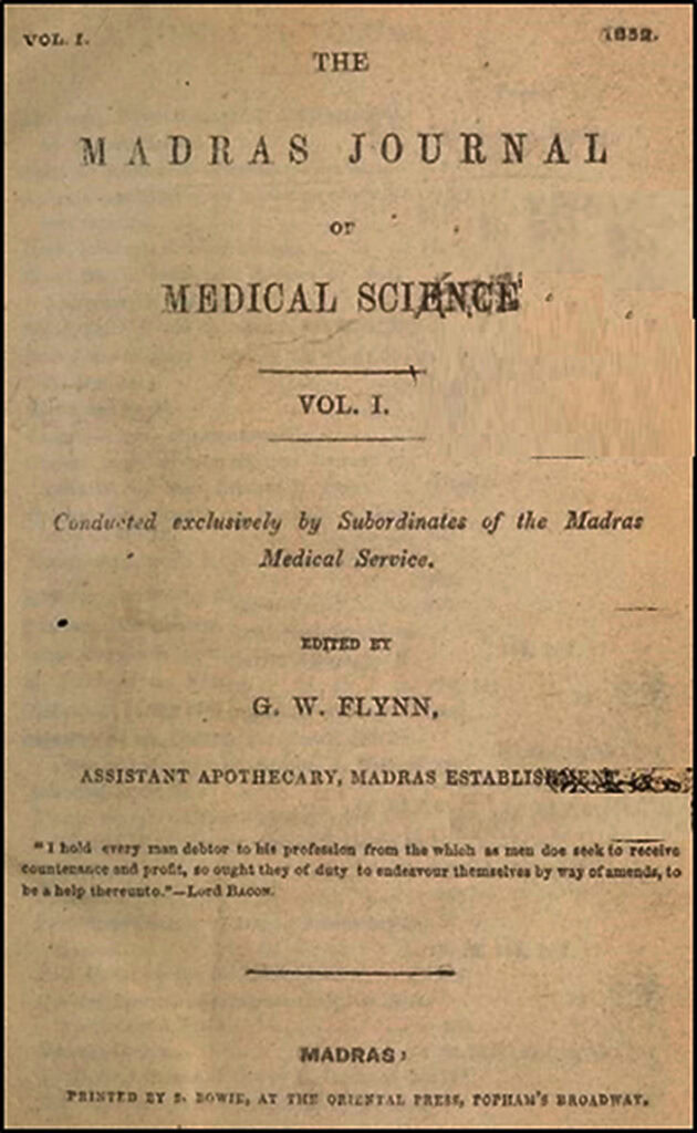 ‘This Journal, which will be called the Journal of Medical Science will be conducted entirely by the Medical Subordinate Department of the Presidency (i.e. Madras Presidency) and will be supported by literary contributions from the same source’.