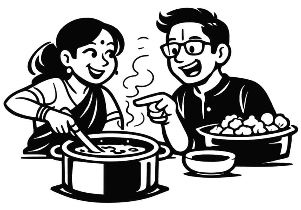 He grinned triumphantly, as though the debate had been settled in his favour. “You Iyers always overthink. We Iyengars just get it right the first time.”“Is that so?” I asked, mockingly raising an eyebrow. “Tell me, what’s the Iyengar way of adding oil to a pan?”