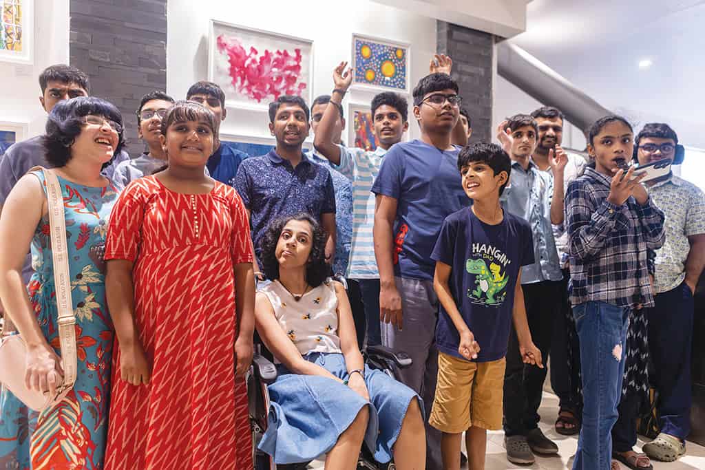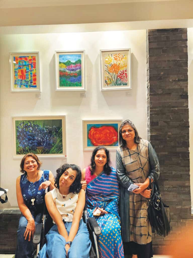 ‘‘Little Zephy’s (10) head is filled with all the characters she has befriended on TV and her books. So there will be pretty princesses, puppies, kitties, many flowers, the sun, moon and stars. It’s a magical, happy art world that gets portrayed.’’ To sum up, the artists are ‘raw, honest and vibrant with no filter because they are not creating for ‘others’.’ They are wards of ABWA (A Brush with Art), a group of seven art facilitators working with the Neuro-diverse.